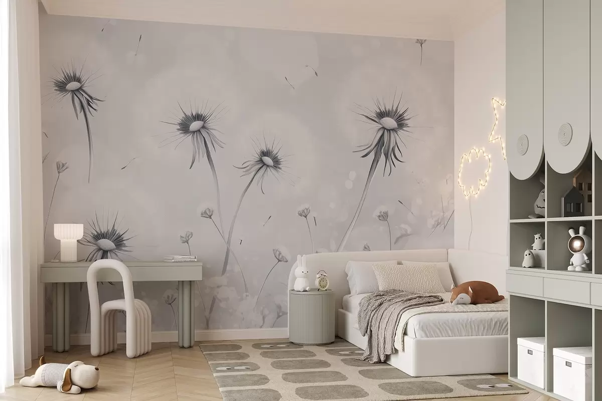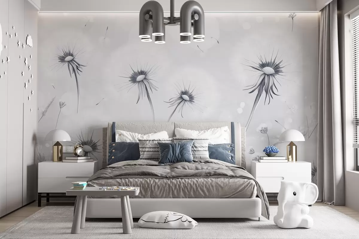 Fototapetai Elegantiškos pienės ir laukinės gėlės tapybos stiliumi mėlynais tonais Nr. w08657v2