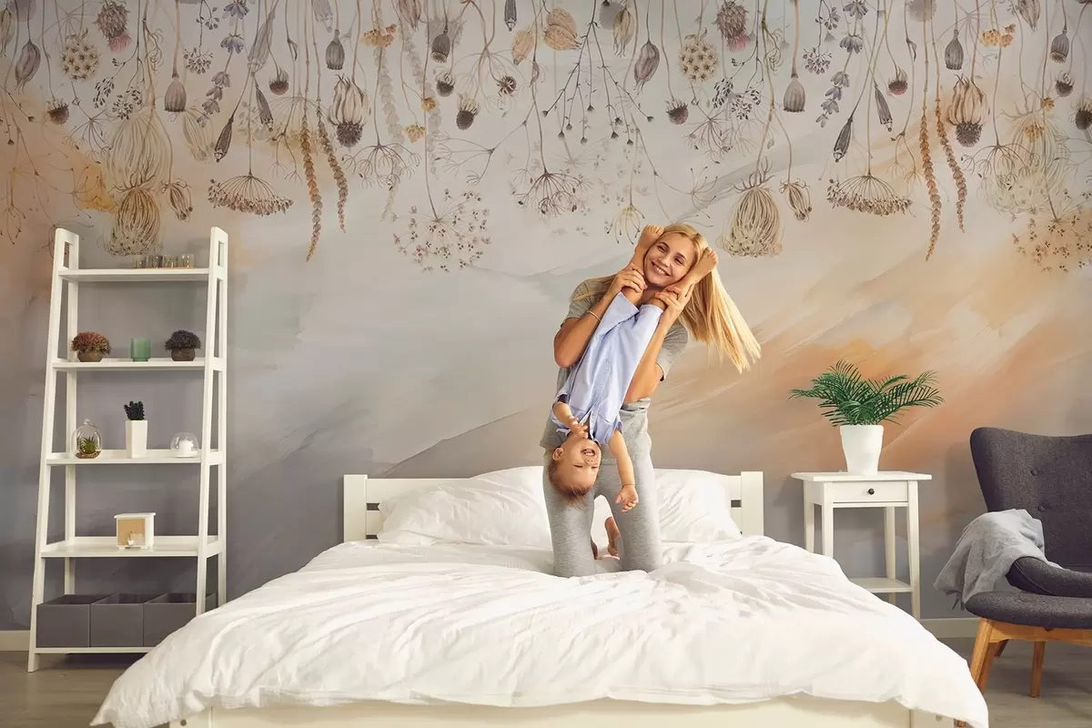 Fototapetai Akvarelės stiliaus laukinės gėlės pasteliniais tonais ant teptuku brūkštelėto fono Nr. w08681