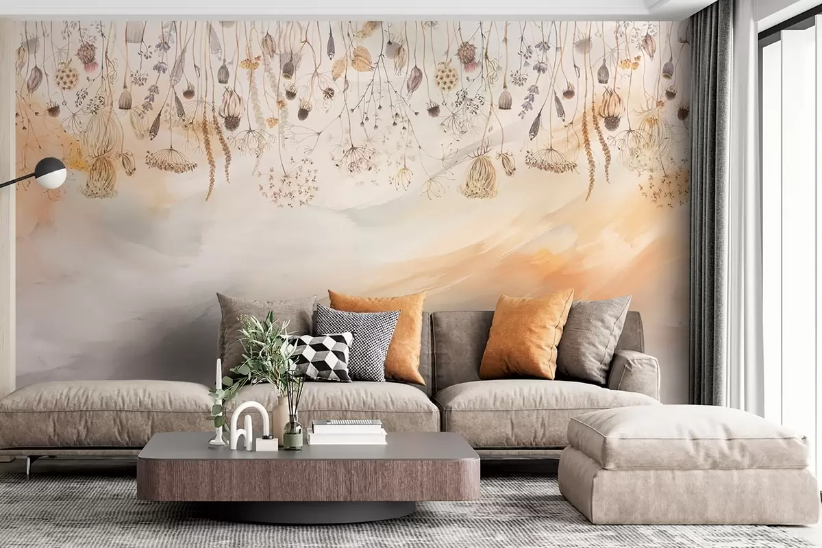 Fototapetai Akvarelės stiliaus laukinės gėlės pasteliniais tonais ant teptuku brūkštelėto fono Nr. w08681
