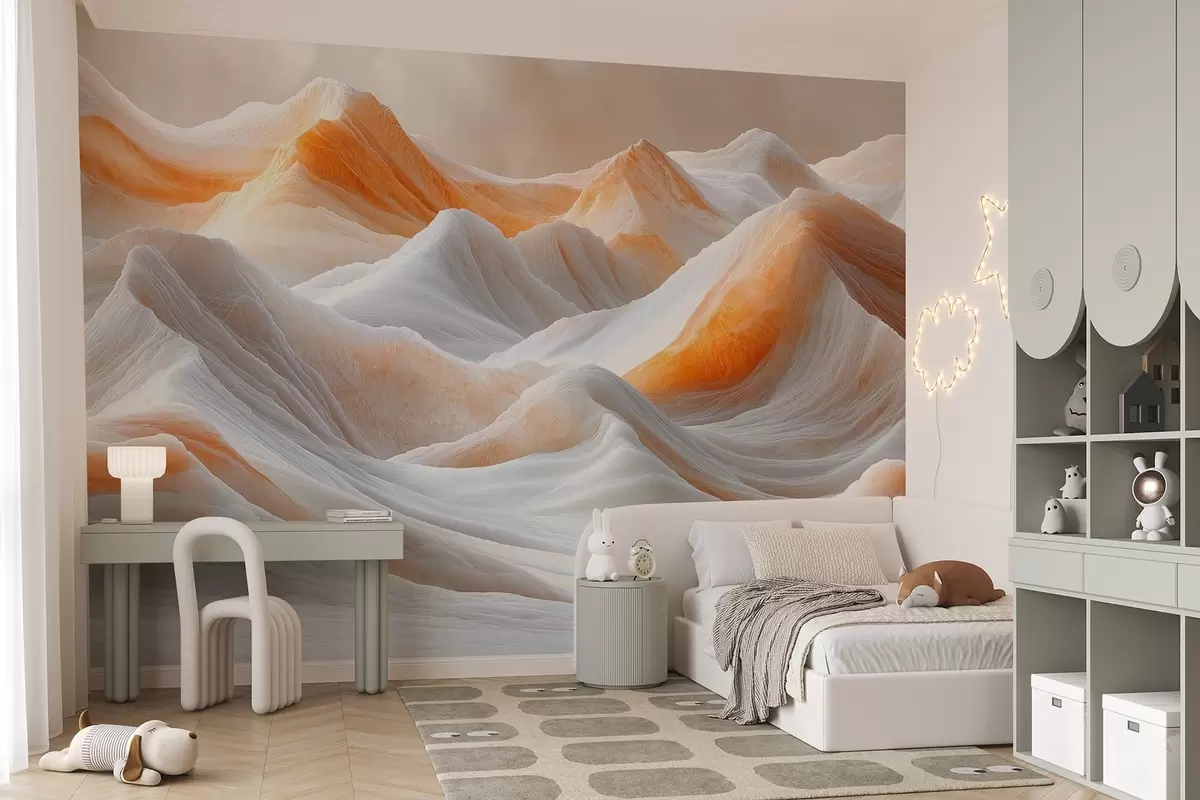 Fototapetai Kalnų kalvos, nuspalvintos oranžiškai pilkais tonais Nr. w08722