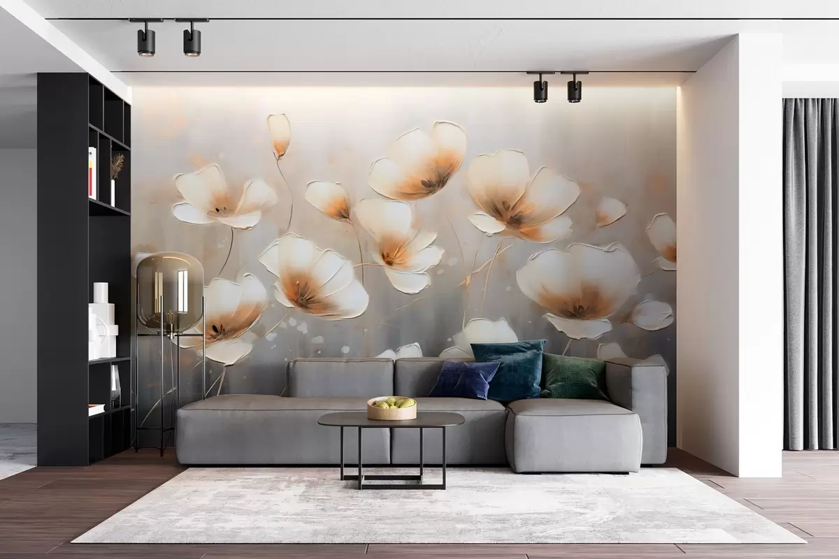 Fototapetai Elegantiškos gėlės su švelniais, minkštais smėlio mėlynos spalvos žiedlapiais Nr. w08746v1
