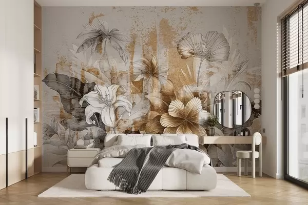 Fototapetai Senovinis dizainas su egzotiškomis gėlėmis ir augalais Nr. w08767
