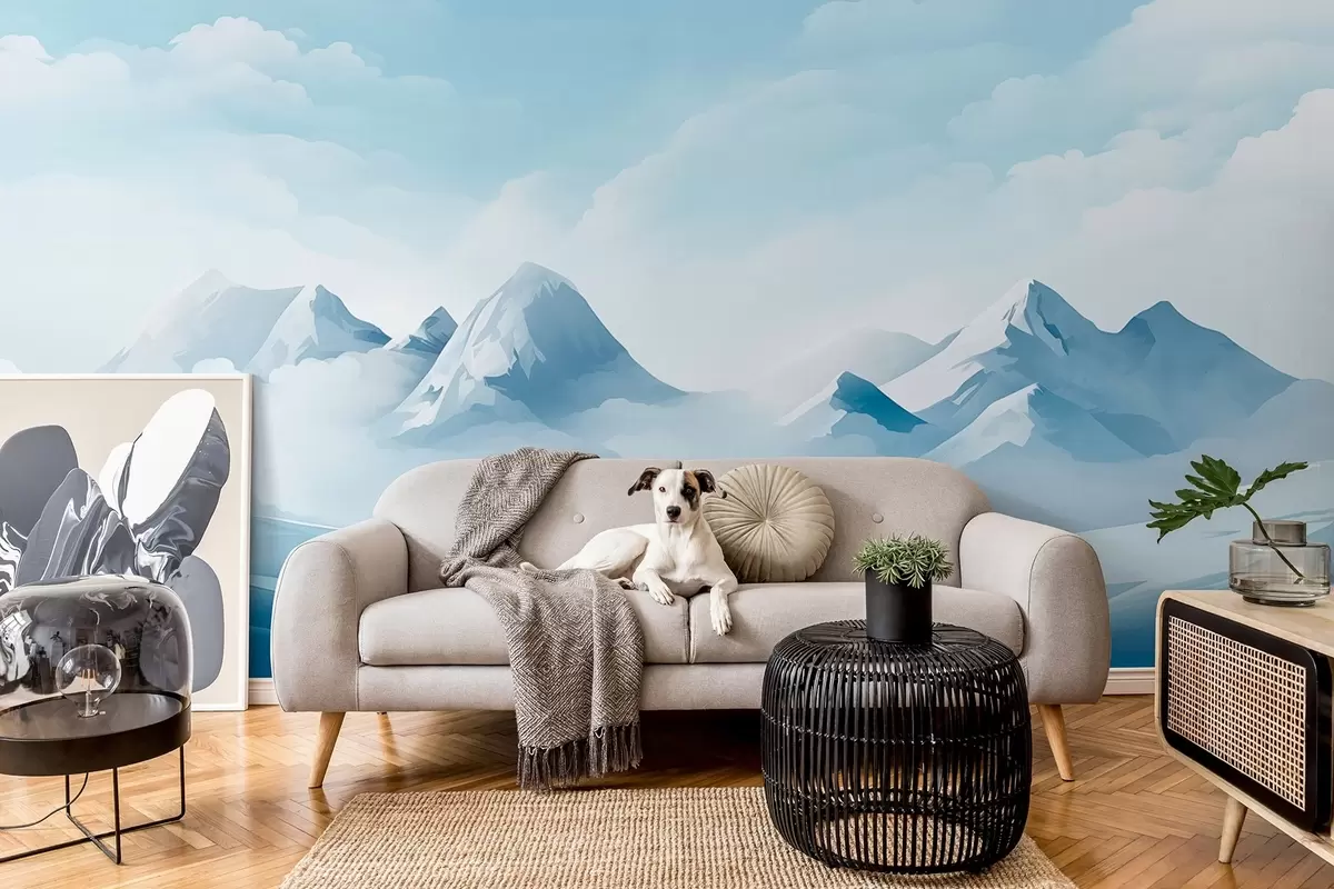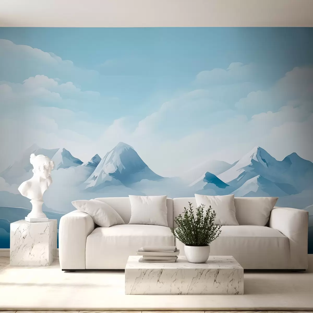 Fototapetai Minimalistiniai mėlyni debesys ir kalnai, ledinis oras Nr. w08811