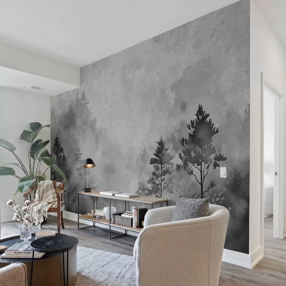 Fototapetai Miškas, akvarelės imitacija, juodai baltas stilius Nr. w08862v1