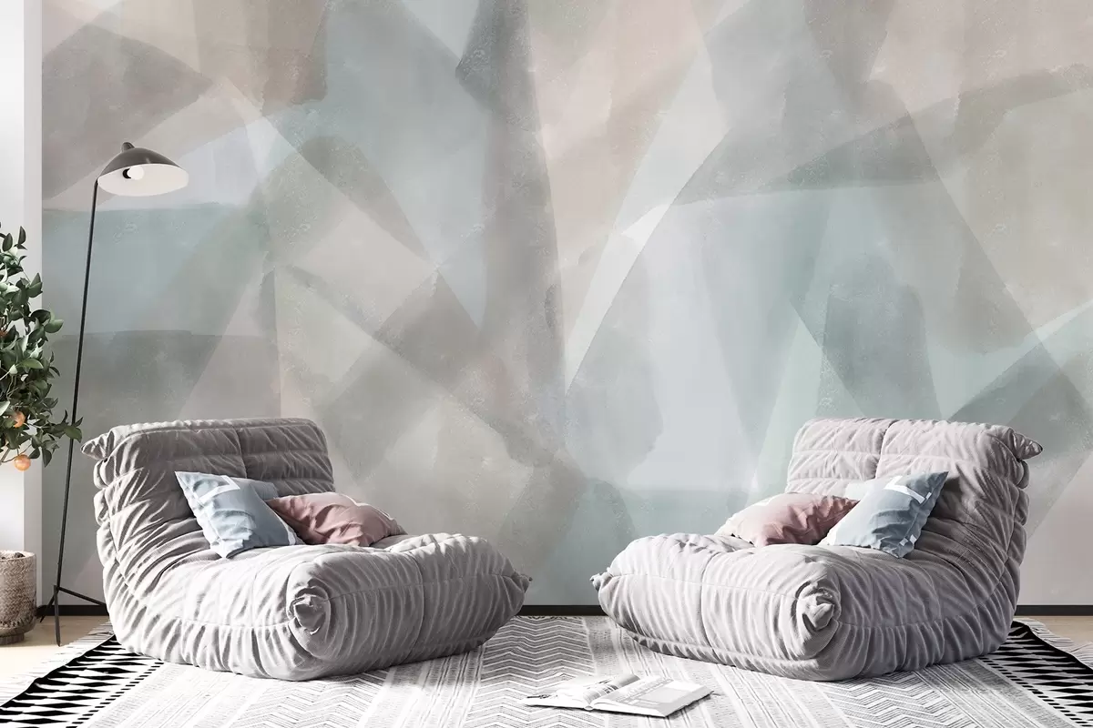 Fototapetai Abstrakčios geometrinės figūros su akvarelės efektu, švelnios pastelinės spalvos Nr. w08919