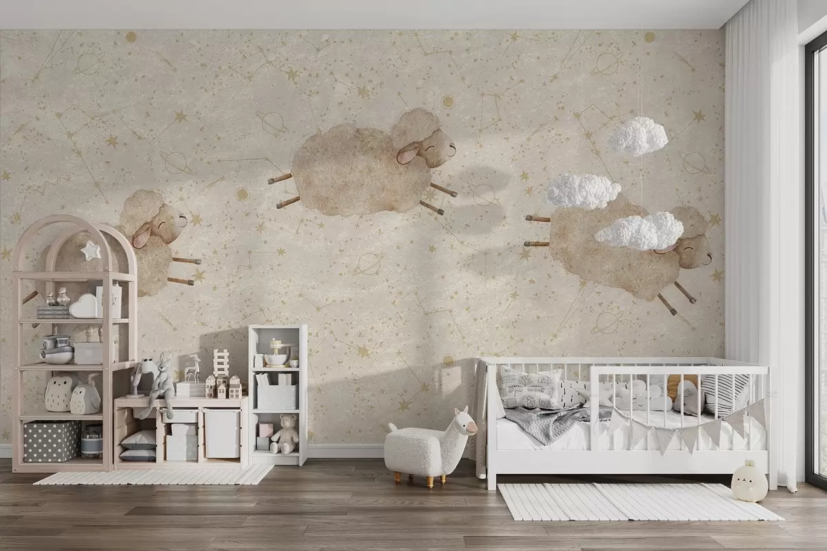 Fototapetai Šokinėjančios avys žvaigždėtame fone Nr. w08930