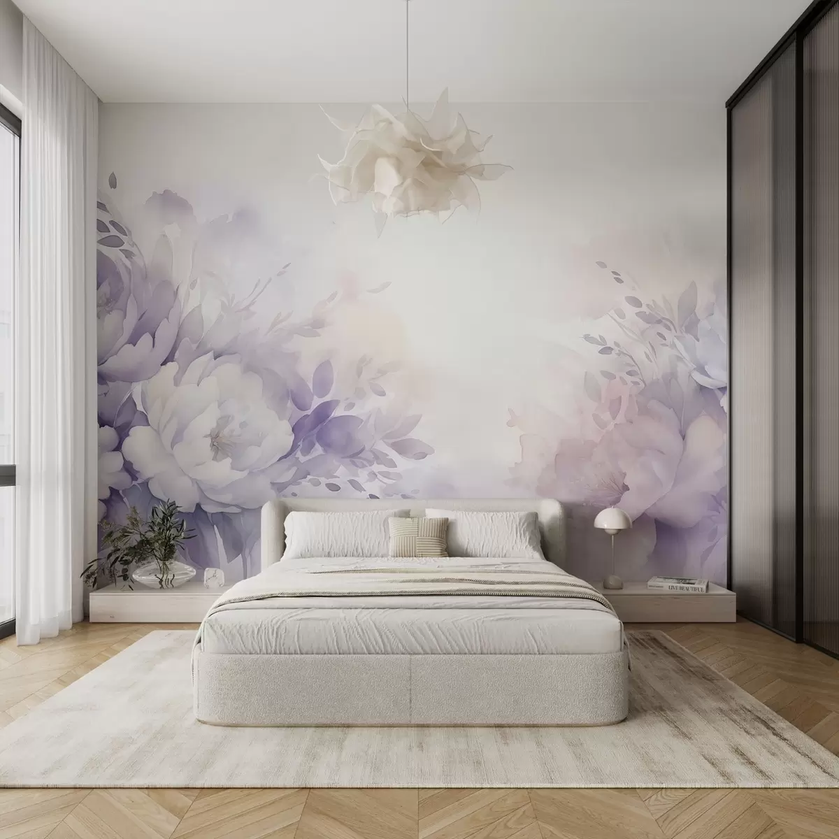 Fototapetai Didelės subtilios alyvinės gėlės, akvarelės imitacija Nr. w08946