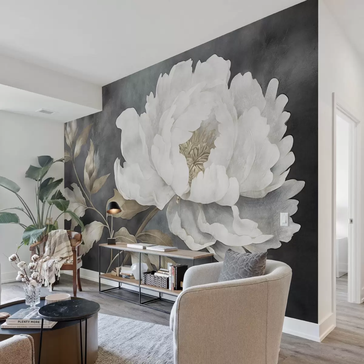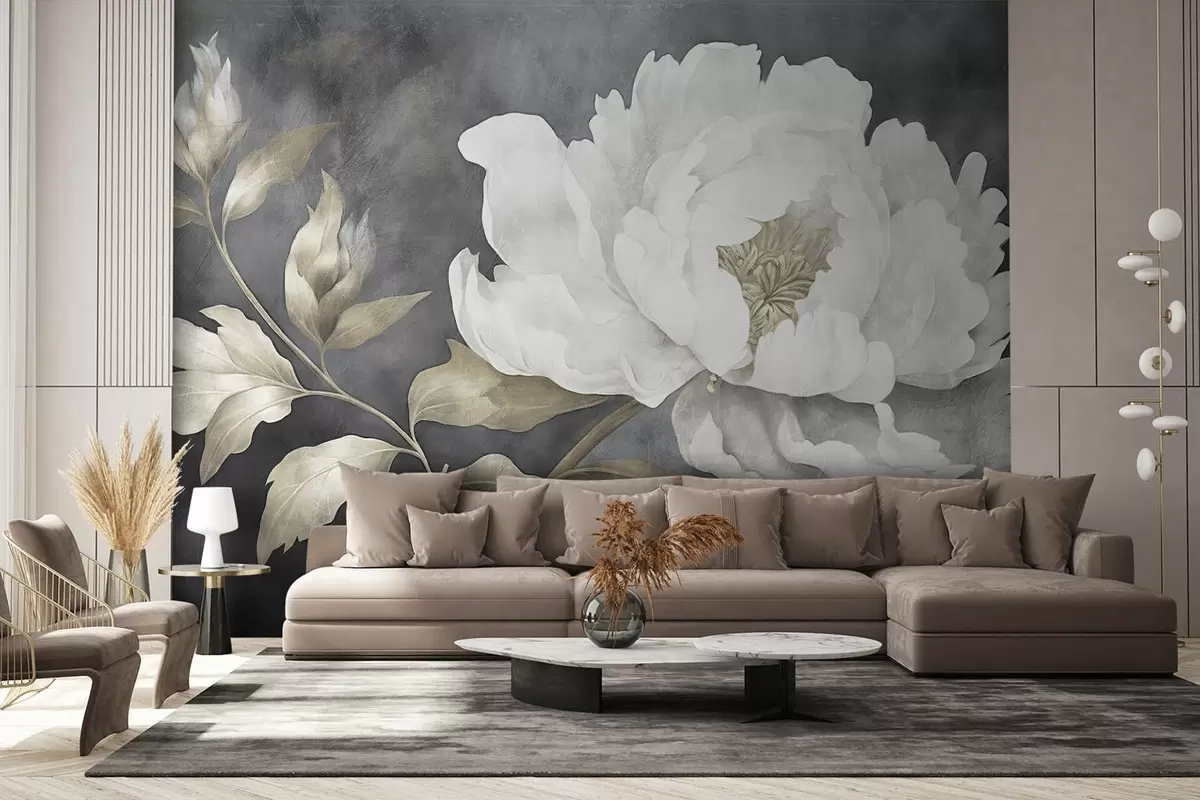 Fototapetai Didelė šviesi gėlė tamsiame senoviniame fone Nr. w08949