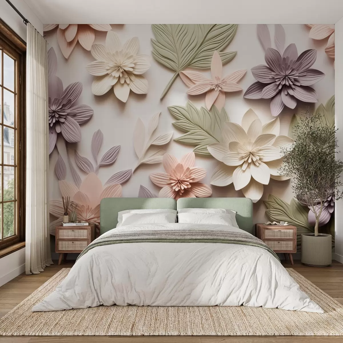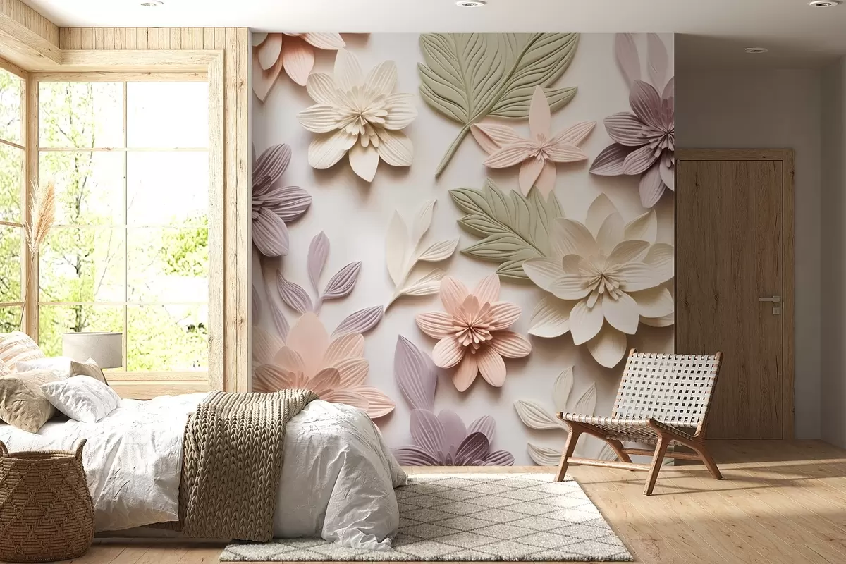 Fototapetai 3D gėlių reljefas iš popieriaus kompozicijos pavidalu Nr. w08958