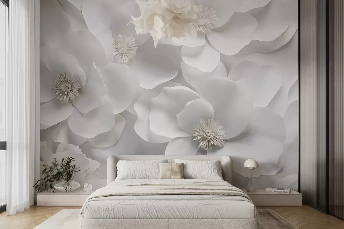 Fototapetai Baltos spalvos žiedai su švelniais žiedlapiais, išdėstyti tankioje kekėje, sukuriantys tyrumo ir elegancijos įspūdį baltame fone Nr. w09053