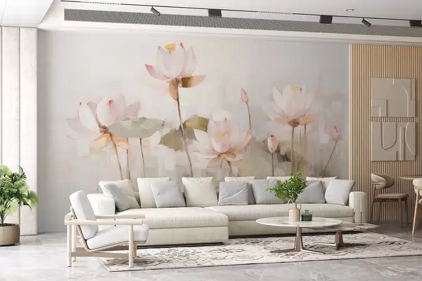 Fototapetai Akrilu tapytos subtilios lotoso gėlės Nr. w09067