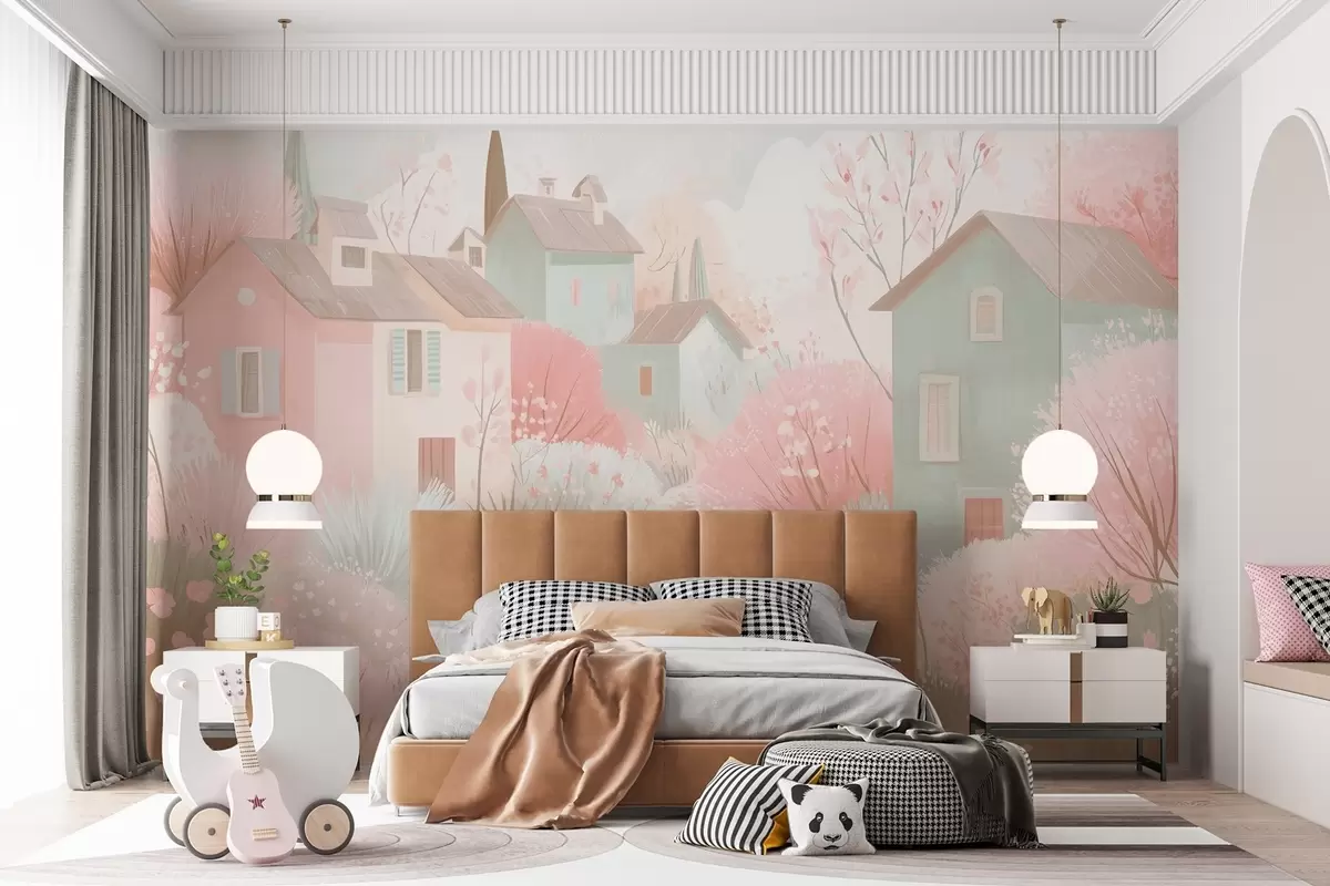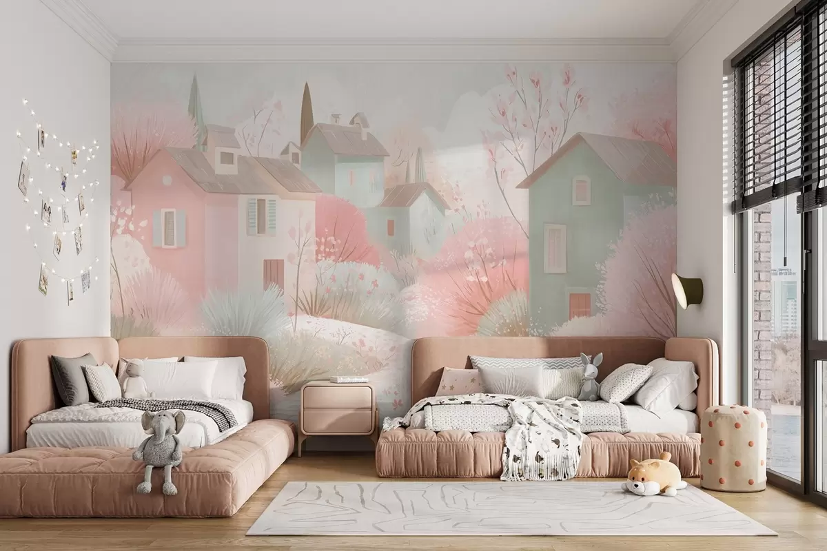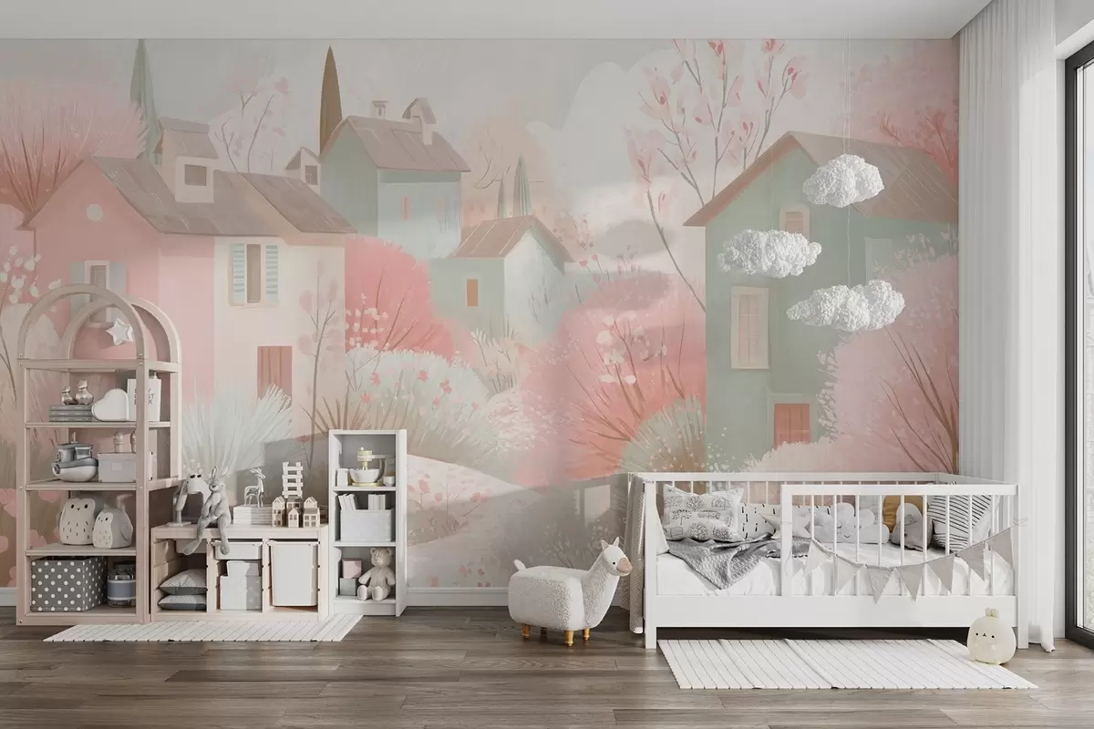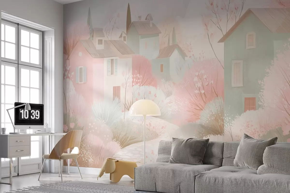 Fototapetai Rožinių atspalvių aliejinės tapybos stiliaus pasakų miestelis Nr. w09095