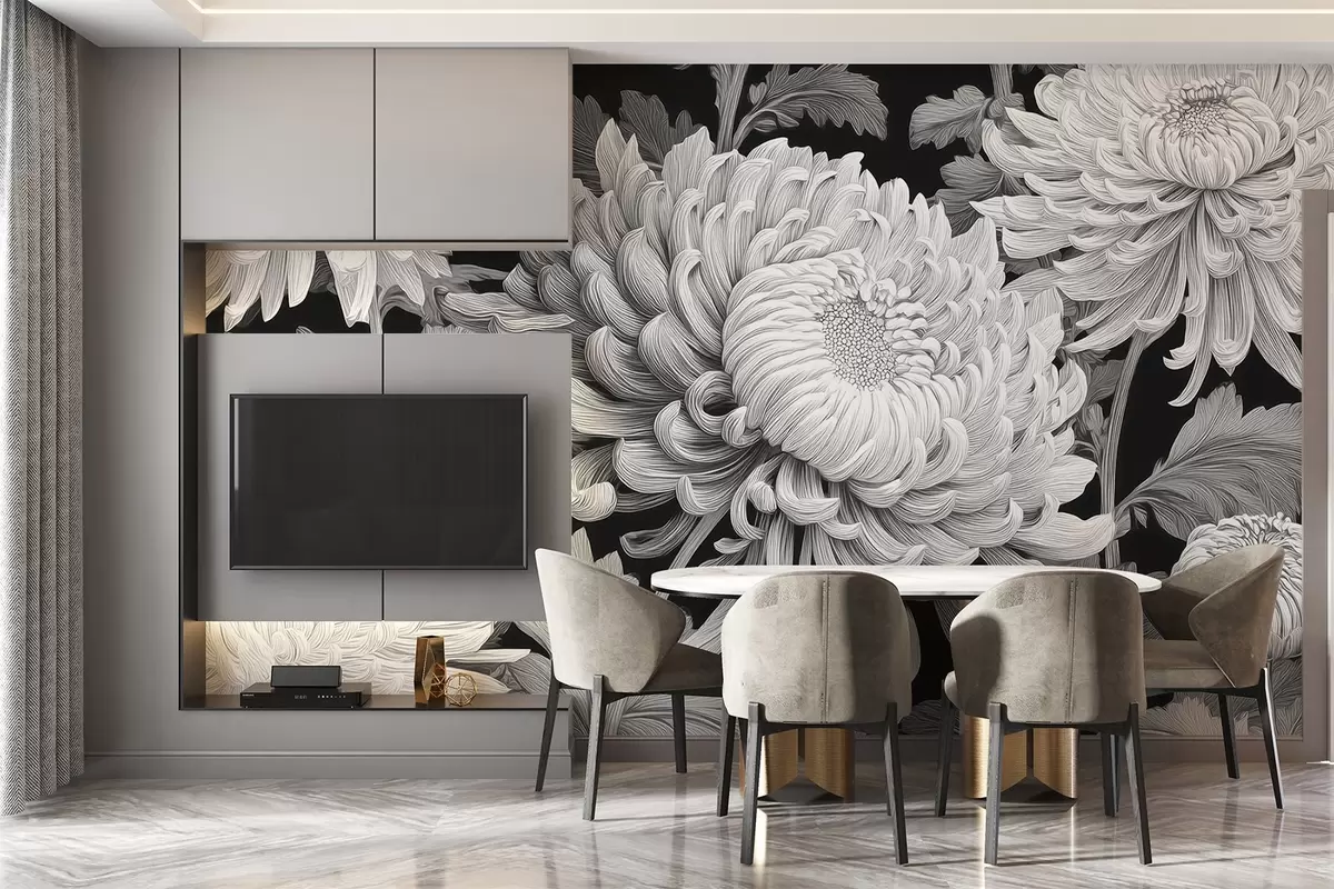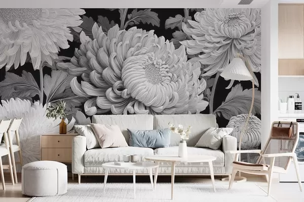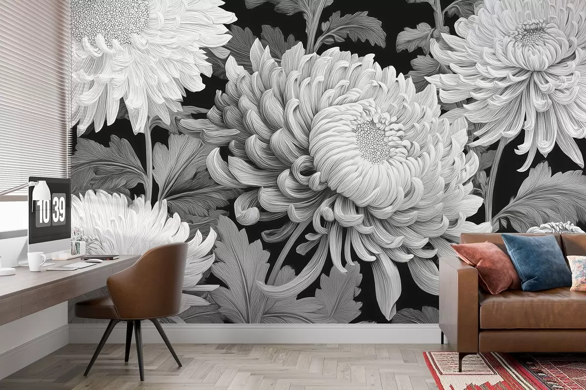 Fototapetai Juodai baltos didelės orchidėjos su lapais Nr. w09125v1