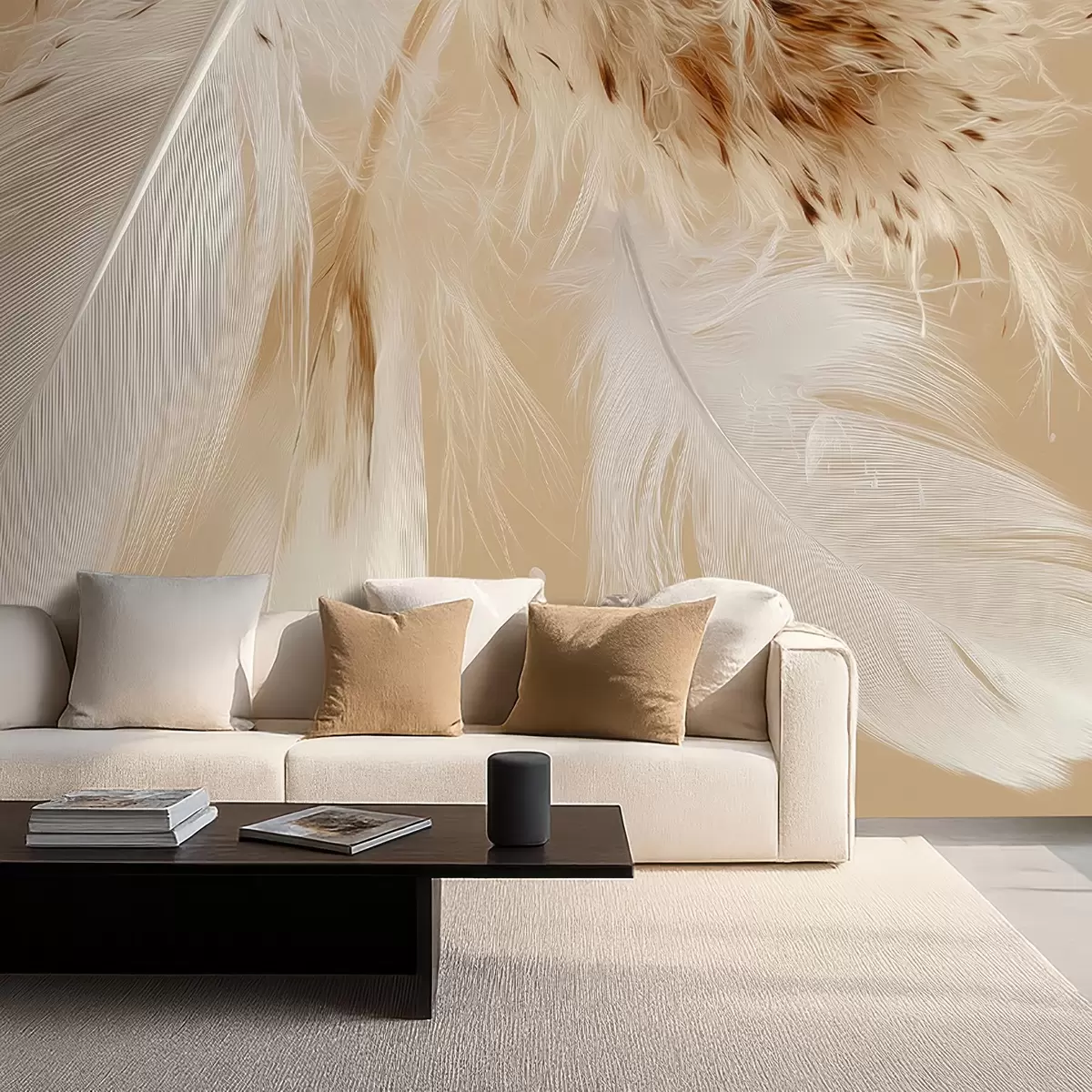 Fototapetai Šviesios šiltų smėlio ir baltų tonų plunksnos Nr. w09153