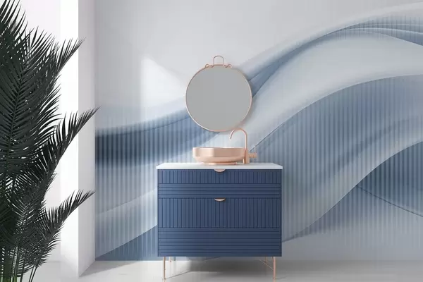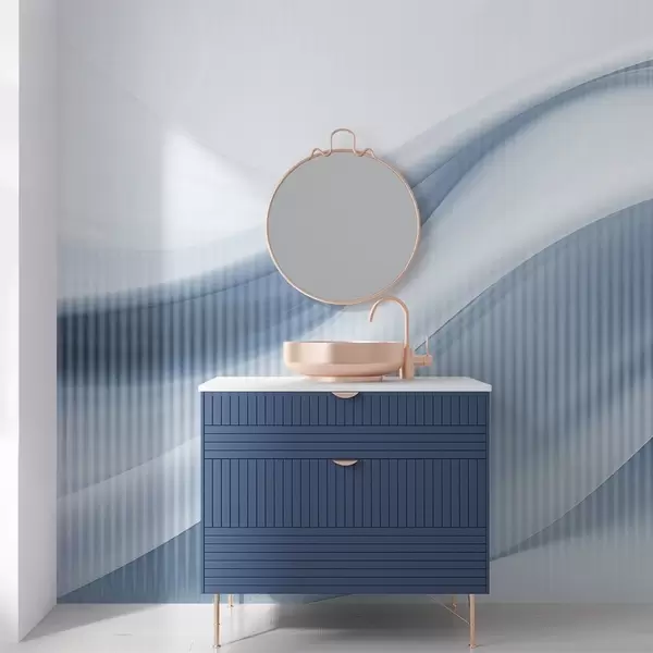 Fototapetai Abstraktus raštas su tekančiomis linijomis ir subtiliomis vertikaliomis juostelėmis, sukuriančiomis judesio ir gylio pojūtį, mėlyna paletė Nr. w09189v1