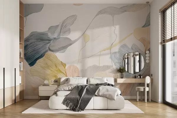 Fototapetai Šiltų ir šaltų pastelinių tonų abstraktūs grafiniai lapai Nr. w09222v1