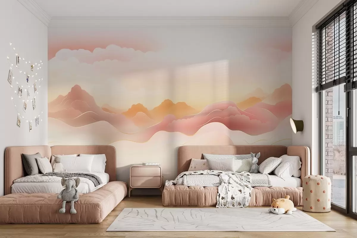 Fototapetai Migloti kalnai po šiltu saulėlydžiu Nr. w09242