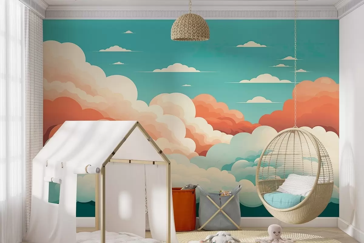 Fototapetai Nuotaikingi animacinio filmo stiliaus debesys po mėlynu dangumi Nr. w09246