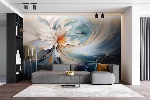 Fototapetai Abstrakti mėlynos ir oranžinės spalvos gėlė Nr. w09270v1
