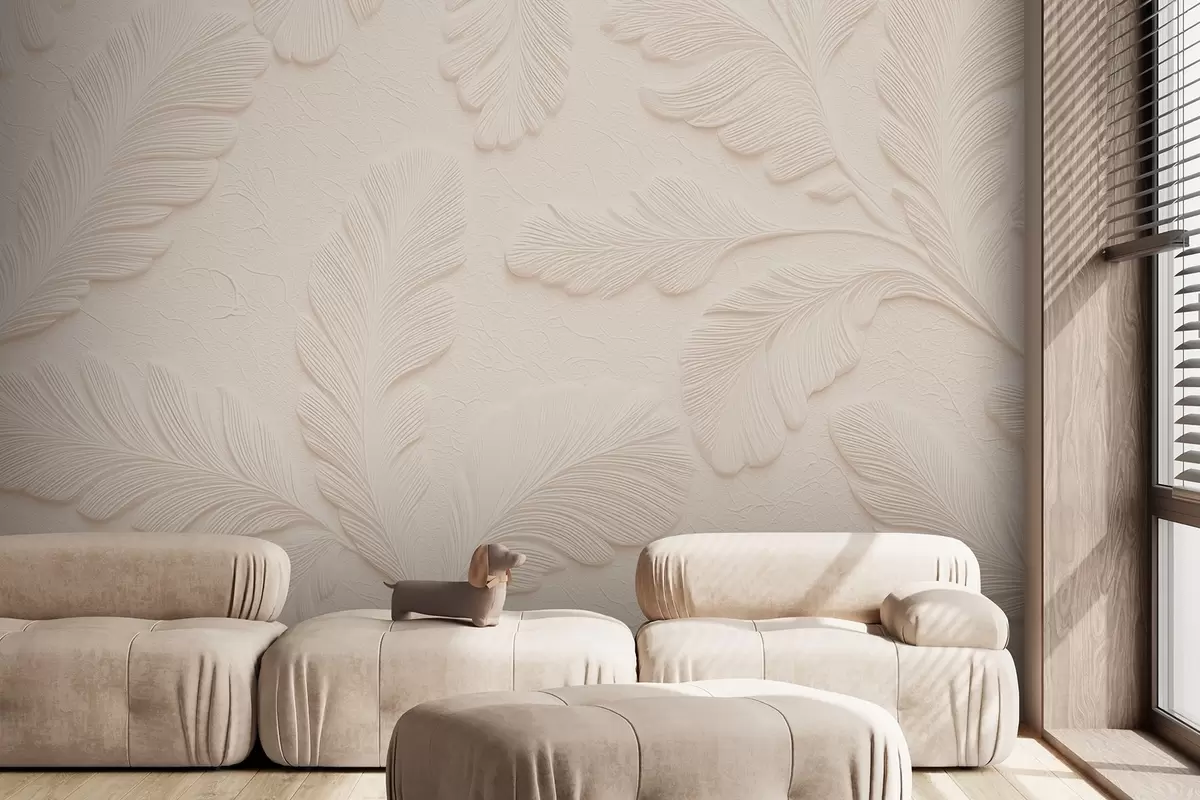 Fototapetai Reljefiniai lapai šviesiame fone su įtrūkimų efektu Nr. w09309