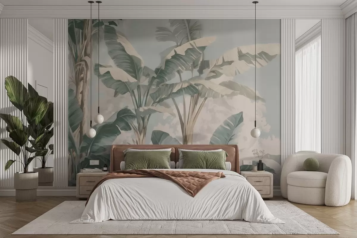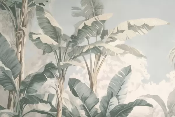 Fototapetai Tropiniai bananų lapai švelniais pasteliniais atspalviais Nr. w09311