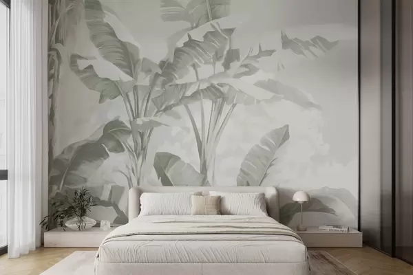 Fototapetai Tropiniai bananų lapai švelniais žaliais atspalviais Nr. w09311v1