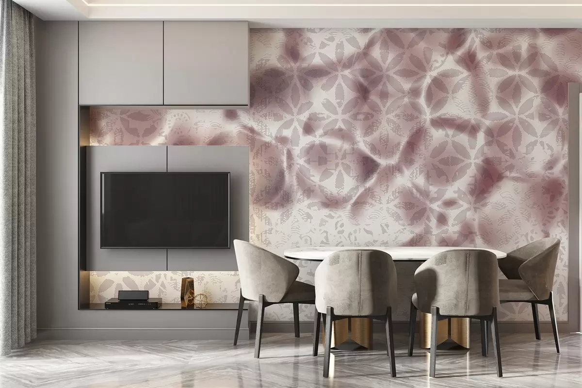 Fototapetai Abstraktus tekstūrinis menas su gėlių atspaudu, išblukusiu ir neryškiu efektu, sukuriančiu švelnią ir svajingą atmosferą Nr. w09322v1