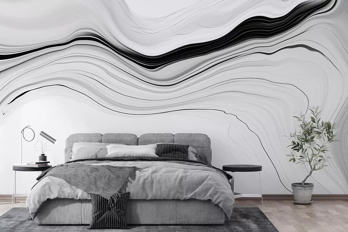 Fototapetai Juodai baltas raštas su marmuro sluoksnių efektu w09358