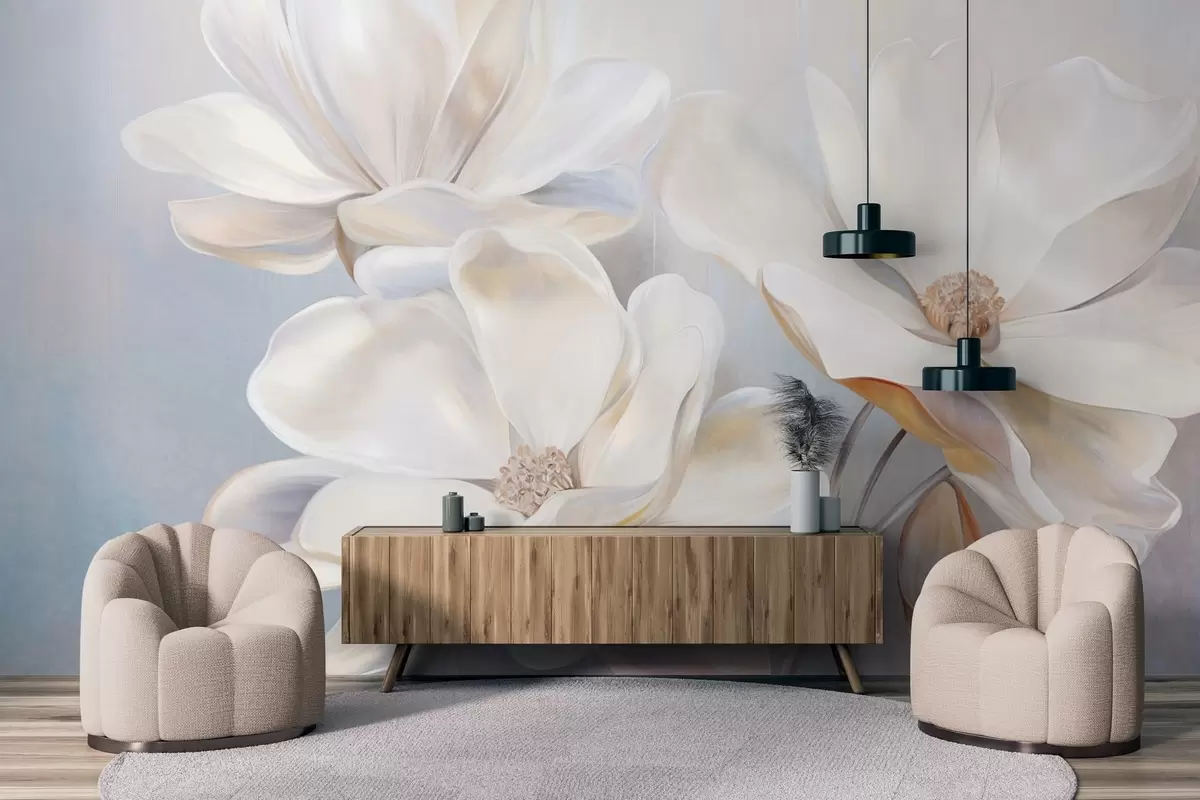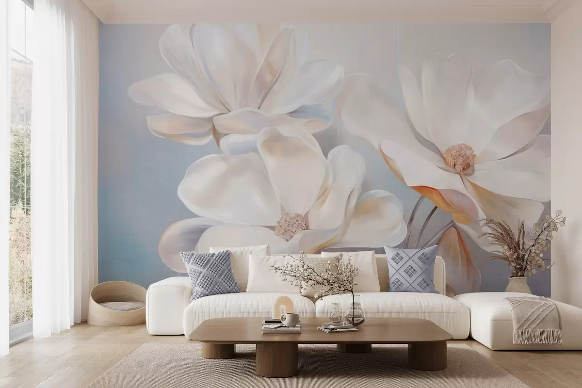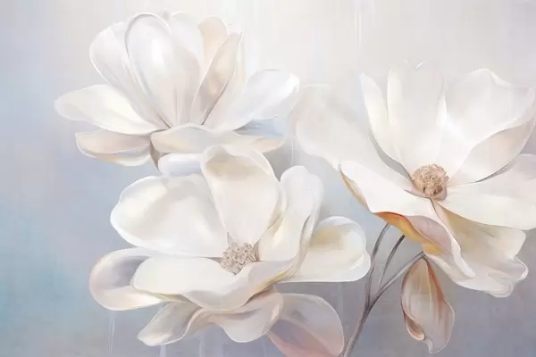 Fototapetai Balta fantazijos magnolijos gėlė su subtiliais tekstūriniais žiedlapiais, švelniu, abstrakčiu fonu Nr. w09373