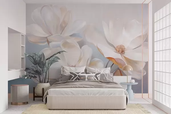 Fototapetai Balta fantazijos magnolijos gėlė su subtiliais tekstūriniais žiedlapiais, švelniu, abstrakčiu fonu Nr. w09373