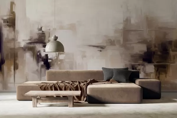 Fototapetai Abstraktus tekstūruotas peizažo tapybos imitacija su rudais ir baltais potėpiais, modernus stilius Nr. w09422v1