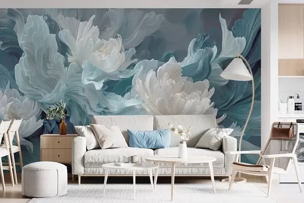 Fototapetai Abstrakčios gėlės mėlynų ir turkio atspalvių Nr. w09452
