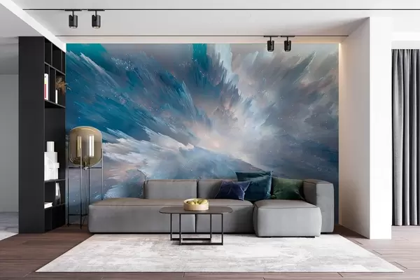 Fototapetai Abstraktus kosminis dangaus švytėjimas ledinių mėlynų atspalvių Nr. w09461