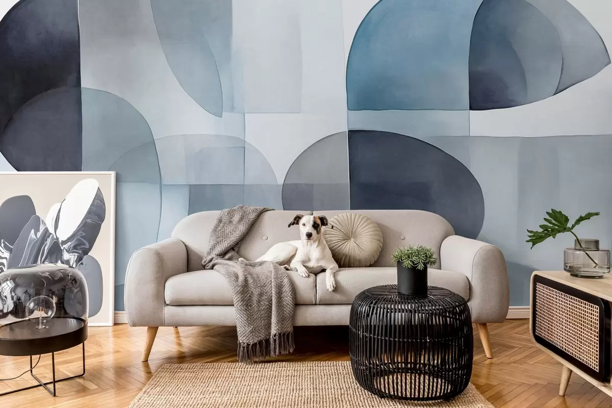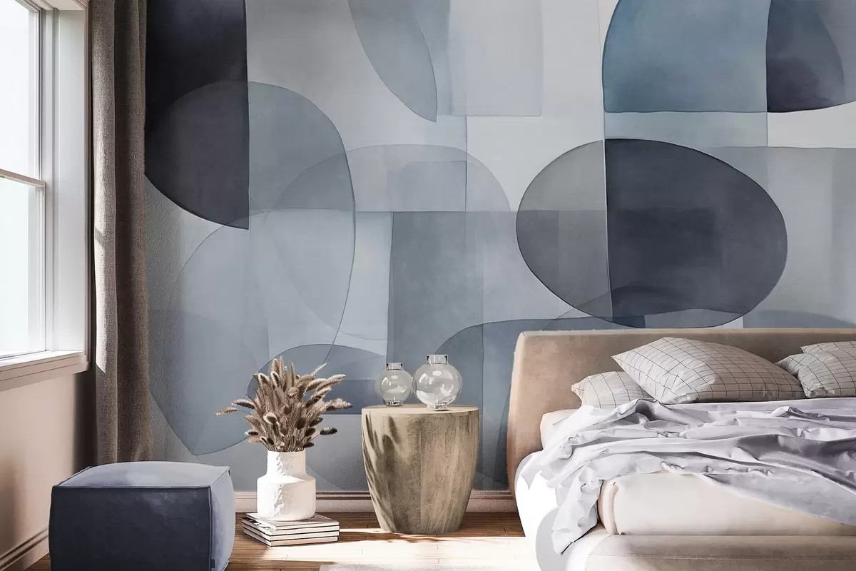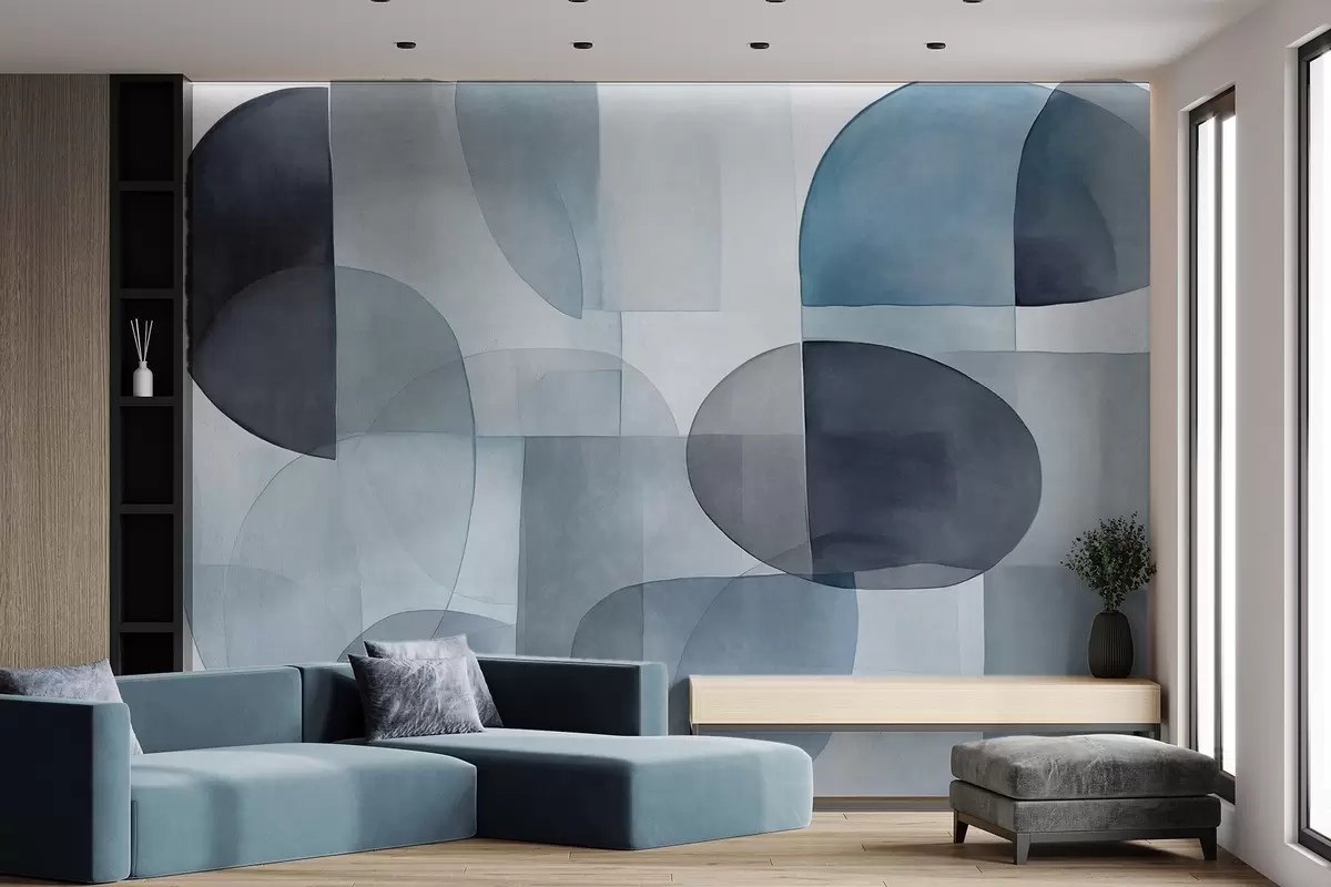 Fototapetai Abstrakčios tekstūruotos formos pilkos ir mėlynos spalvų atspalviais, prislopinti tonai, minimalistinė kompozicija, neutralus fonas Nr. w09467v1