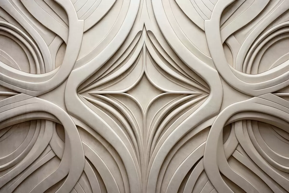 Fototapetai Abstraktus simetriškas tekstūruotas geometrinis raštas, šviesiai smėlio spalvos, art deco stiliaus, sudėtingos detalės Nr. w09473