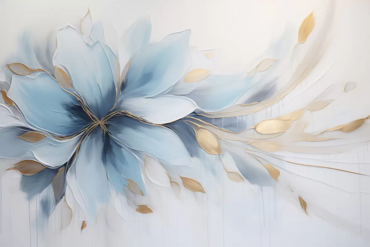 Fototapetai Abstraktaus ramybės mėlynas gėlė su auksiniais lapais Nr. w09500