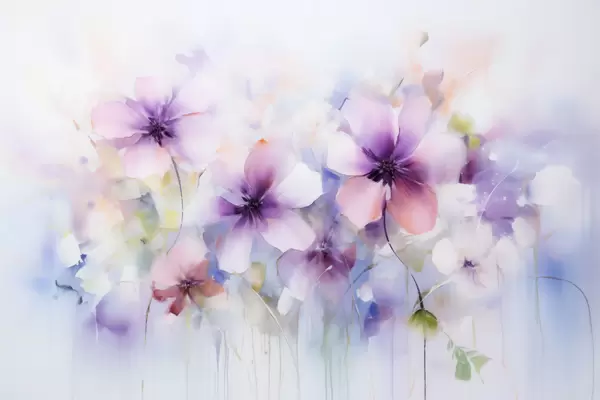 Fototapetai Pavasario akvarelės gėlės rausvos ir violetinės spalvos atspalviais Nr. w09502