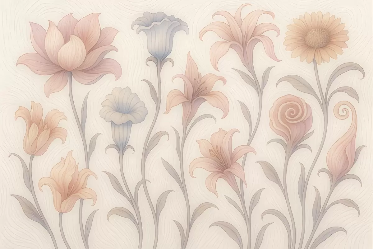 Fototapetai Švelni gėlių kompozicija pastelinėmis spalvomis Nr. w09503