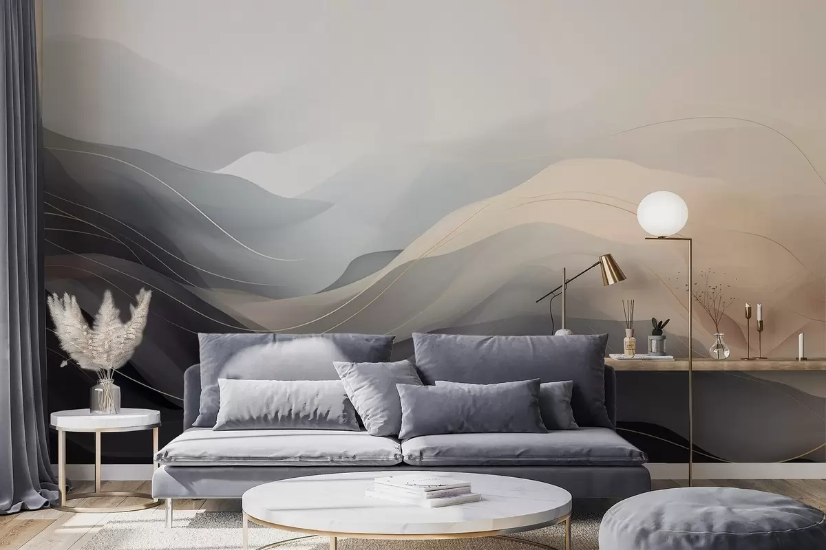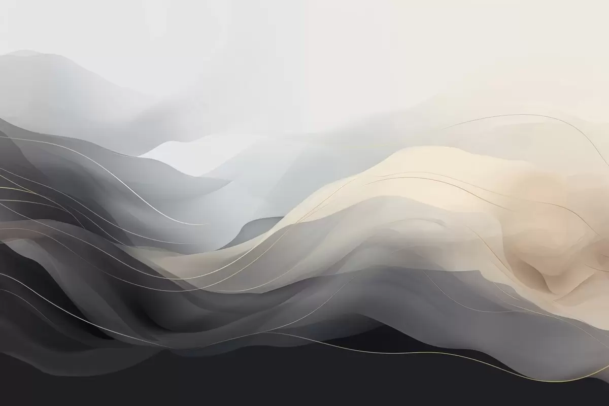 Fototapetai Abstrakčios miglotos bangos pilkai kreminių atspalvių su geltonomis linijomis Nr. w09504