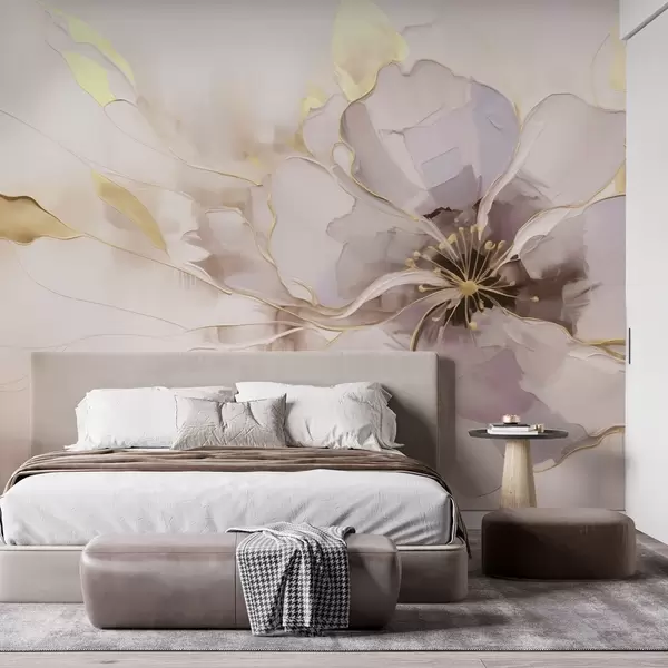 Fototapetai Mėlyna gėlė su geltonais akcentais abstrakčiu potėpių stiliumi Nr. w09505
