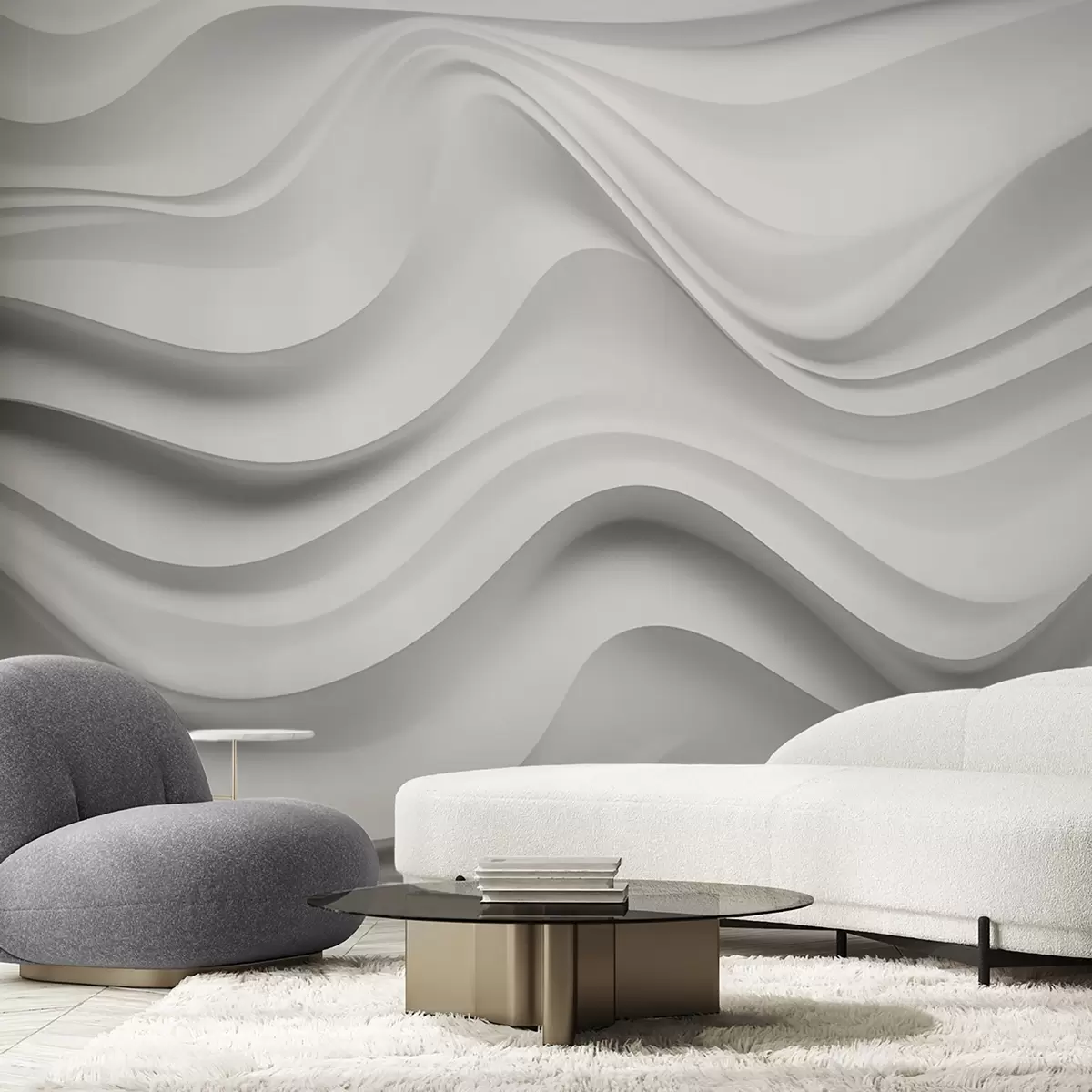 Fototapetai Juodai balta abstrakti 3D kompozicija su švelniomis bangomis Nr. w09506