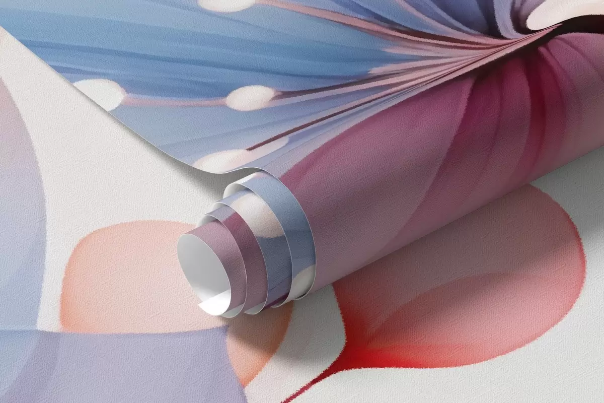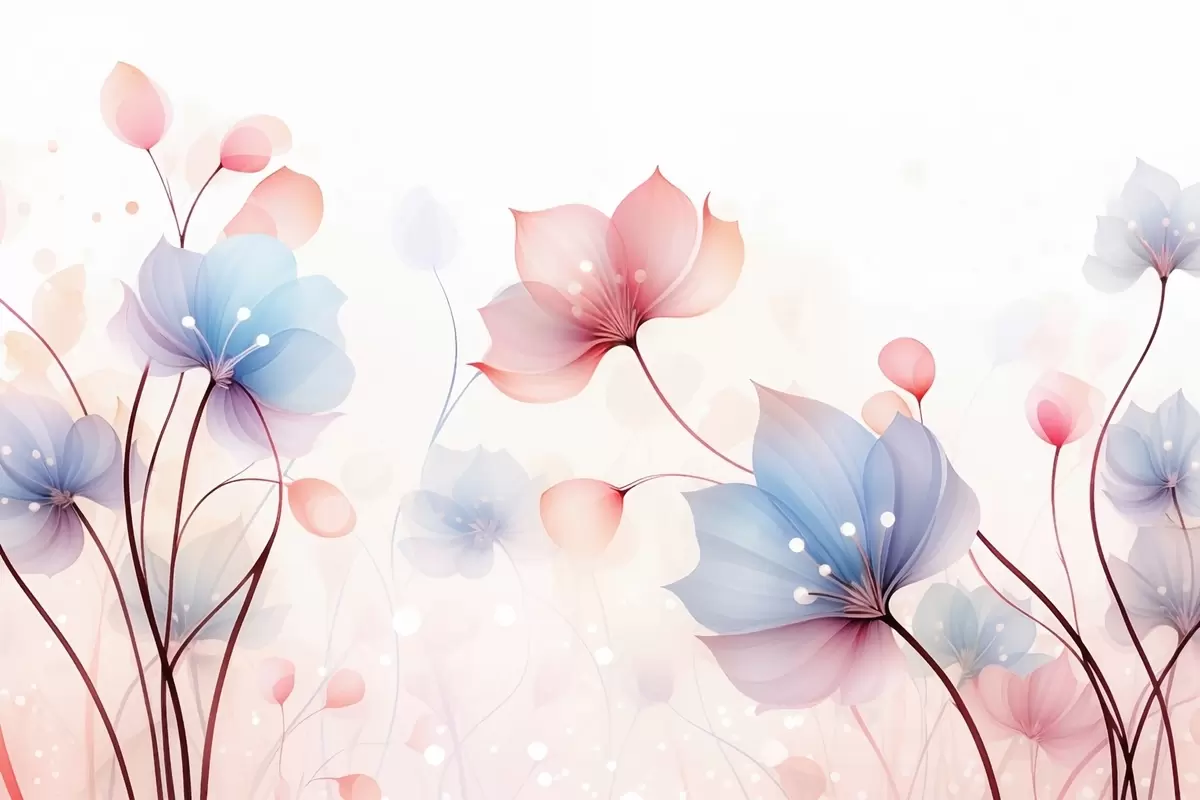 Fototapetai Subtilūs rožiniai-mėlyni žiedai — lengvi augalai ant balto akvarelės fono Nr. w09507