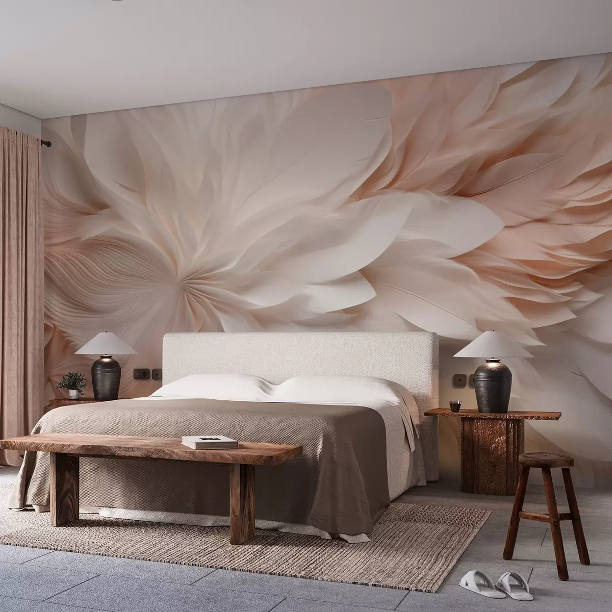 Fototapetai Subtilūs abstraktūs plunksnų judesiai smėlio ir kreminės spalvos tonais Nr. w09509