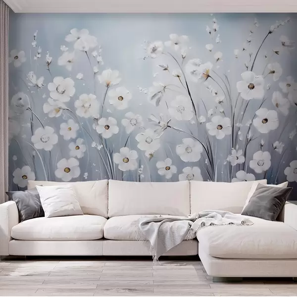 Fototapetai Balta gėlė prieš mėlyną dangų aliejaus tapybos stiliumi Nr. w09516