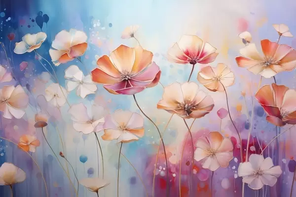 Fototapetai Ryškios laukinės gėlės akvarelės stiliaus purslais Nr. w09521