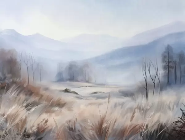 Fototapetai Tekstūruotas kraštovaizdis su sausa žole priešakyje ir medžiais fone, tolumoje matomos kalvos Nr. w09542