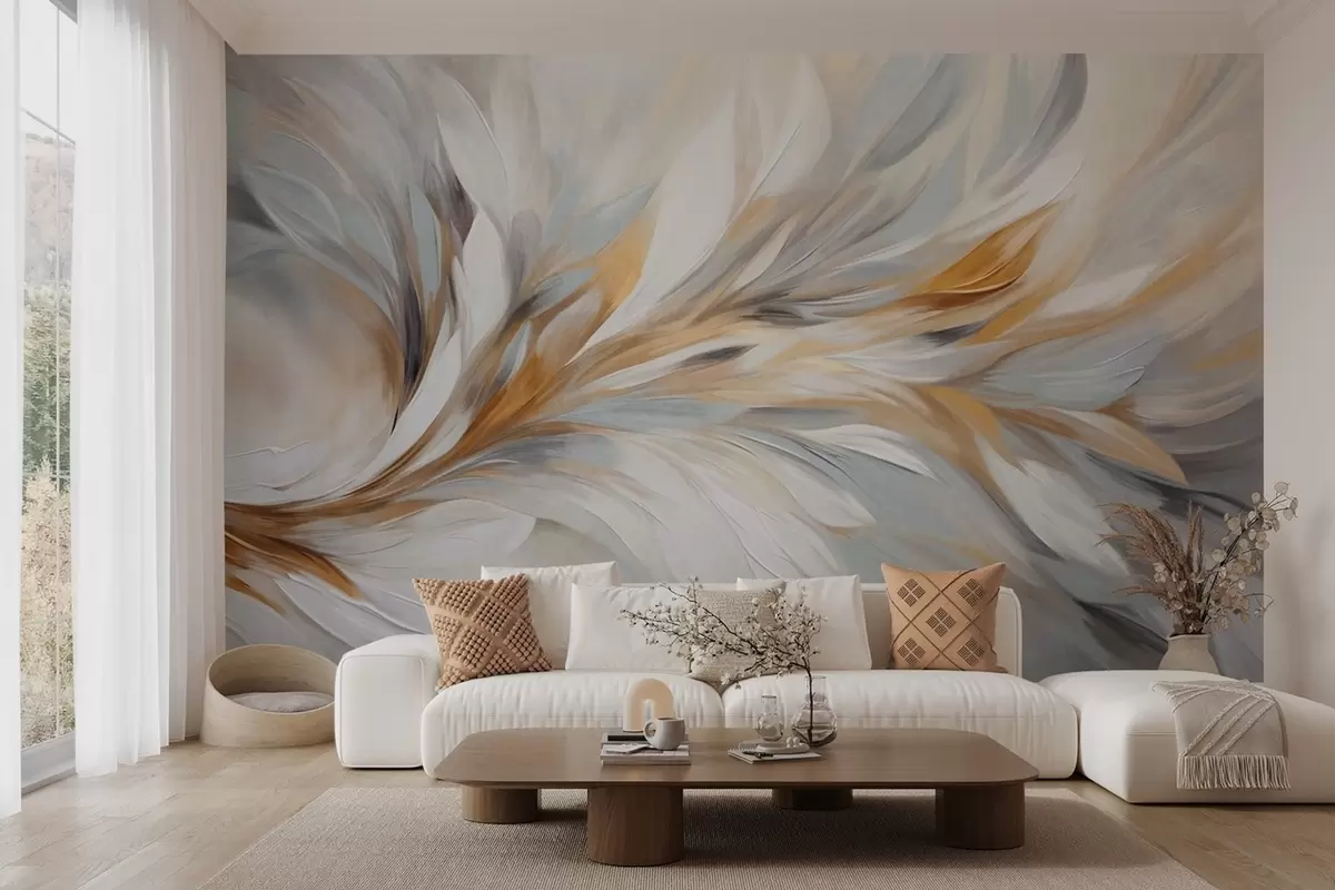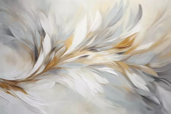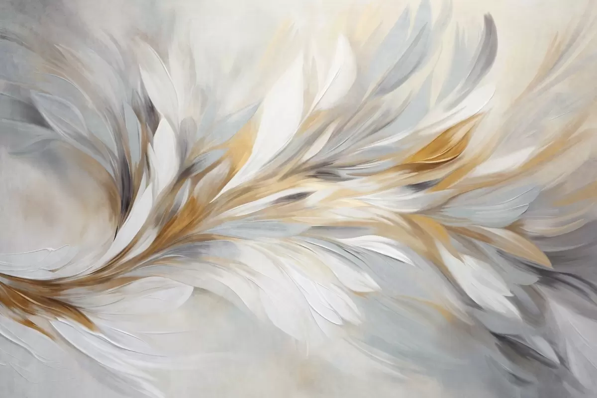 Fototapetai Abstraktus tapybos stilius su baltais, geltonais ir pilkais tekstūriniais potėpiais ant švelnaus, šviesaus fono. Nr. w09552