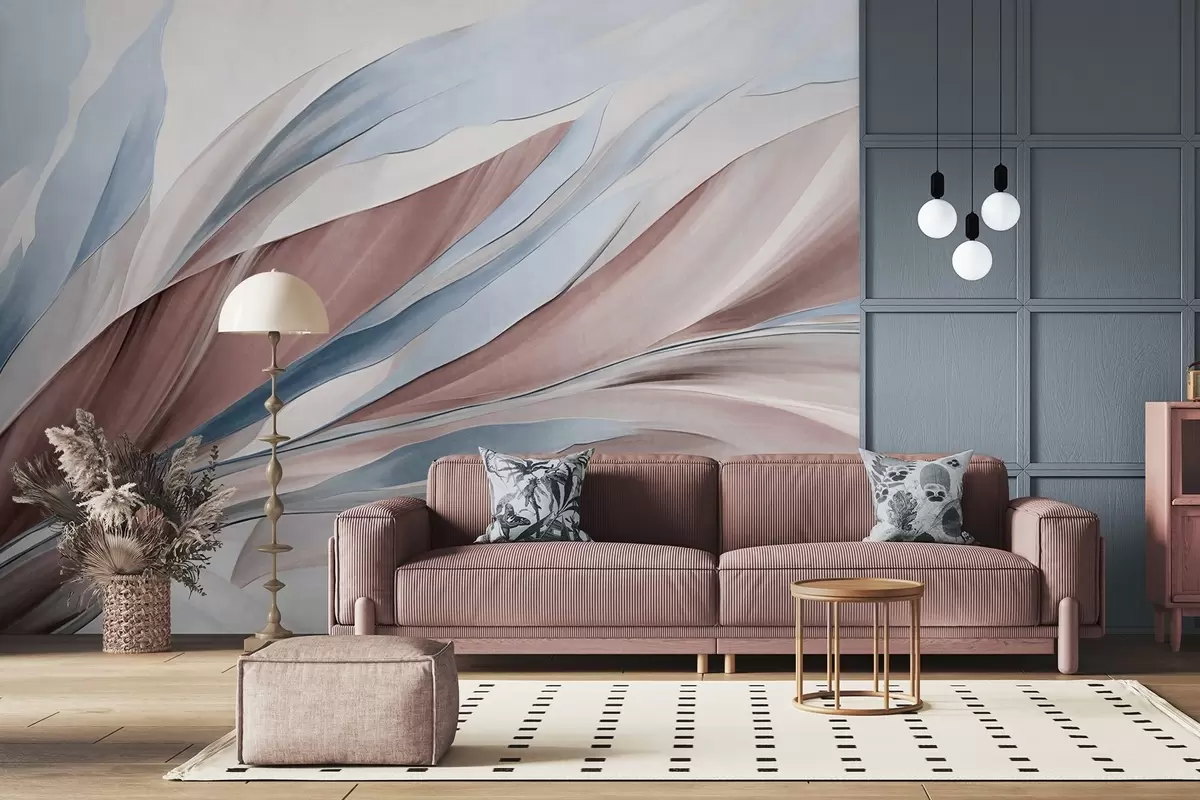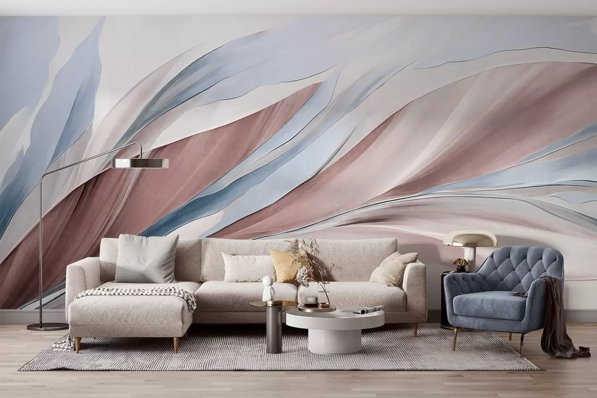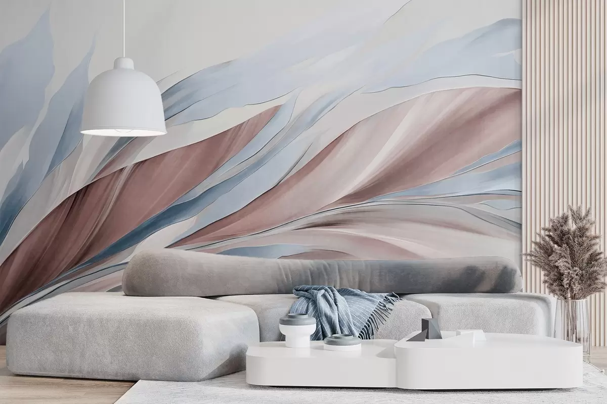 Fototapetai Abstrakčios mėlynos ir rudos spalvos bangos, plonos formos ir linijos, baltame fone, tekstūruotas menas Nr. w09585v1