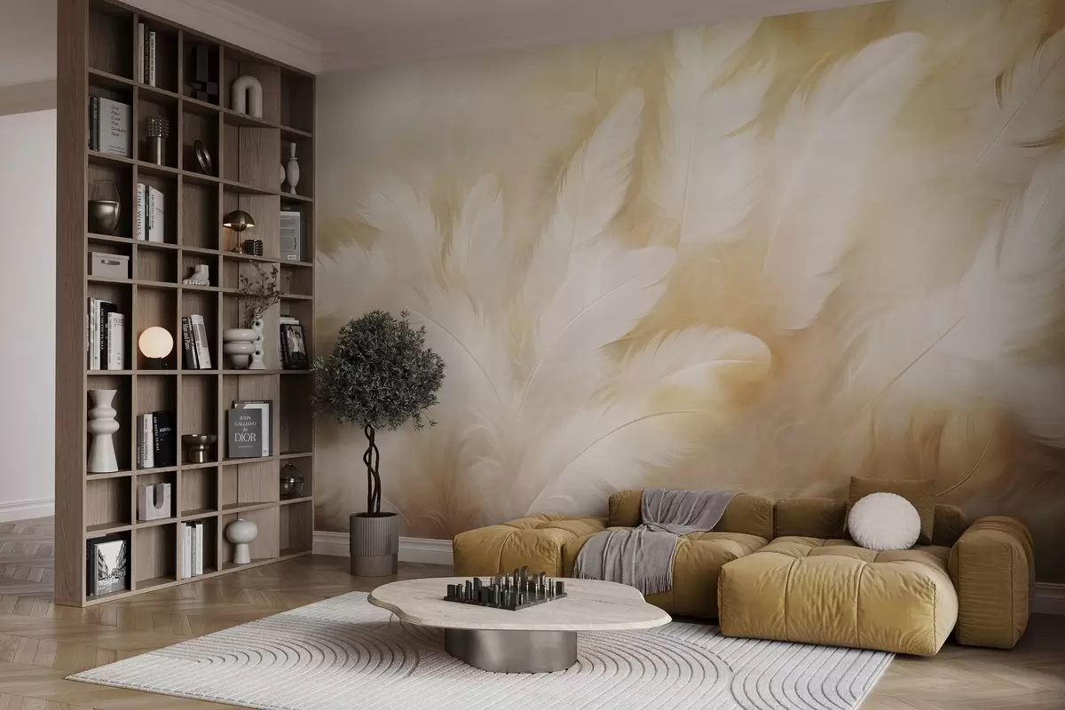 Fototapetai Balta ir geltona plunksna, minkšta tekstūra Nr. w09606
