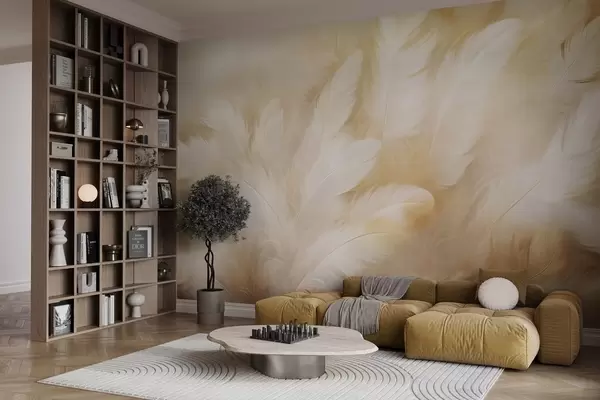 Fototapetai Balta ir geltona plunksna, minkšta tekstūra Nr. w09606